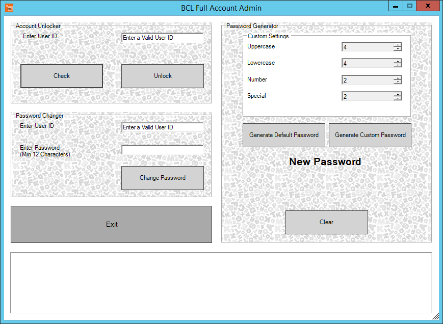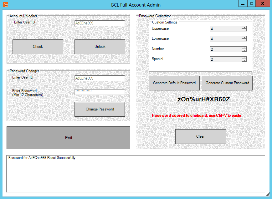 Managing simple account administration tasks are very straightforward using PowerShell, if you know how. This is a task 1st and 2nd Line Teams do and need to do on a regular basis; when dealing with fault tickets. This little script is very easy to use and extremely basic in its construction, but is still useful. It allows the user to check if an account is locked and then unlock it if required, generate a random password based on the default settings of '4 upper and lowercase characters and 2 numbers and 2 special characters'. Or you can customise the character content and count. And then change the password using the password changer.